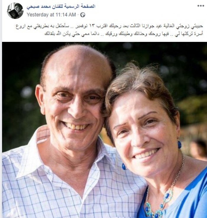 بعث الفنان المصري الكبير محمد صبحي، برسالة إلى زوجته الراحلة نيفين رامز، قبل حلول ذكرى عيد زواجهما بأيام.