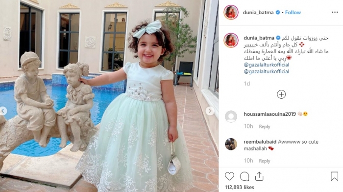 نشرت المطربة المغربية دنيا بطمة، مجموعة من الصور لابنتها "غزل"، عبر حسابها الرسمي في موقع "انستجرام".