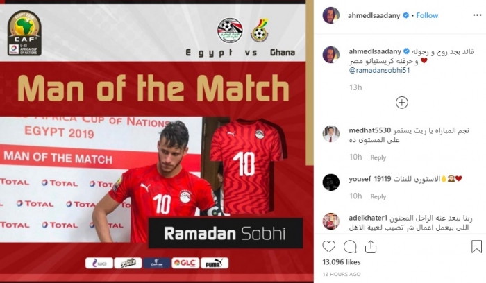 ونشر السعدني صورة لصبحي، عبر حسابه الرسمي بموقع "إنستجرام"، وعلق :"قائد بجد روح ورجولة، وحرفنه، كريستيانو مصر".