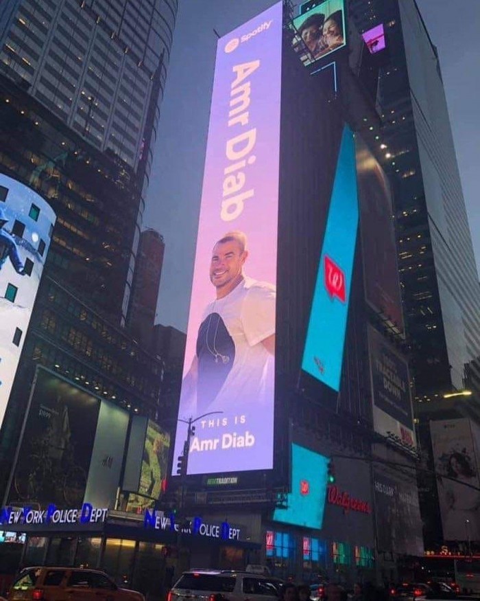 وقامت "وورلد ميوزيك أورد " بوضع صورة البوستر على صفحتها بموقع فيسبوك، وكتبت: نجم مصر العملاق عمرو دياب في تايمز سكوير نيويورك، حيث تروج سبوتيفاي لإصدار ألبومه الجديد الذي طال انتظاره".