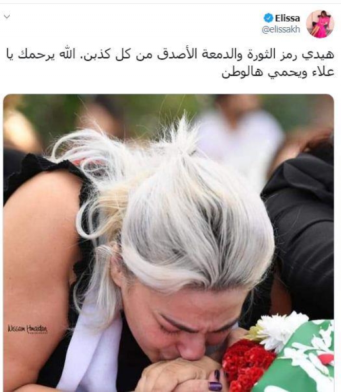 بعد استشهاد علاء أبو فخر.. إليسا :هيدي رمز الثورة