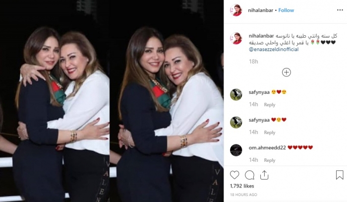 هنأت الفنانة نهال عنبر، صديقتها الفنانة إيناس عز الدين بعيد ميلادها، الموافق 18 نوفمبر الجاري.