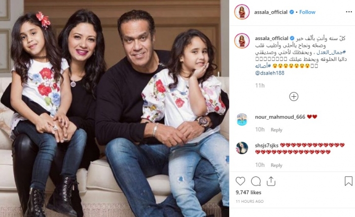 ونشرت أصالة صورة للعدل وعائلته، وعلقت: "كل سنة وإنت طيب وبألف خير وصحة ونجاح يا أحلى وأطيب قلب، جمال العدل، والله يحفظك لأختي وصديقتي داليا الخلوقة ويحفظ عيلتك".