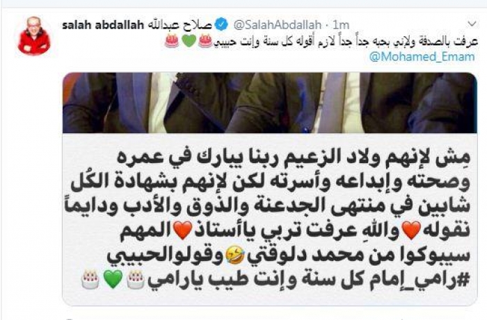 صلاح عبدالله يهنئ رامي إمام بعيد ميلاده