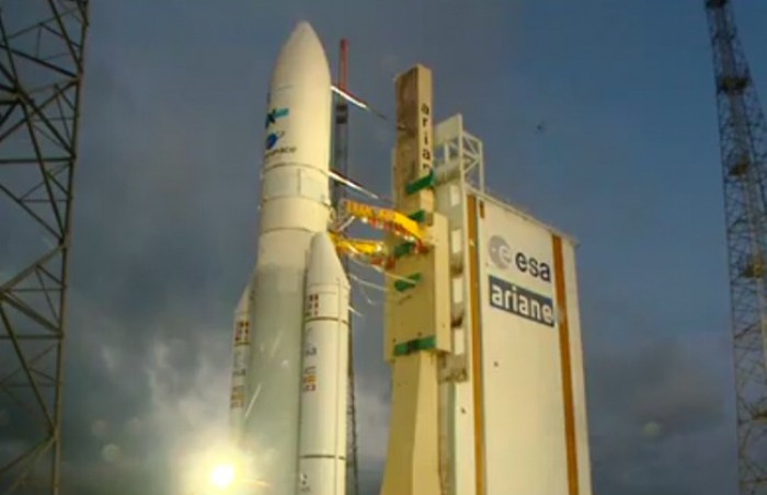 رصدت وسائل إعلام مصرية لحظة إطلاق القمر الصناعي المصري "طيبة 1" ، بواسطة شركة آريان سبيس الفرنسية على صاروخ الإطلاق «آريان-5».