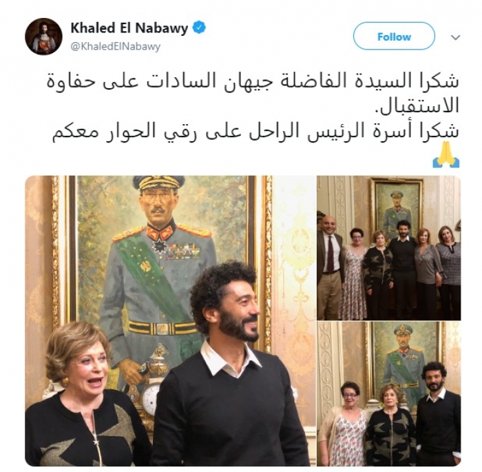 نشر الفنان المصري خالد النبوي، عبر حسابه الشخصي بموقع "تويتر" صورًا من زيارته لمنزل الرئيس الراحل أنور السادات.