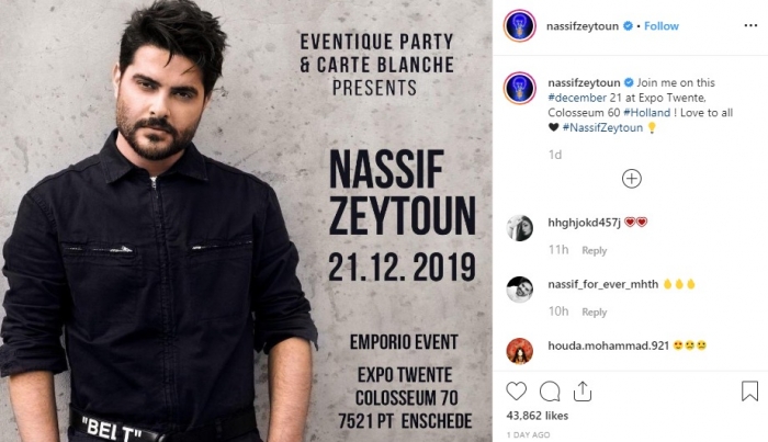 تعرف على موعد حفل ناصيف زيتون بهولندا