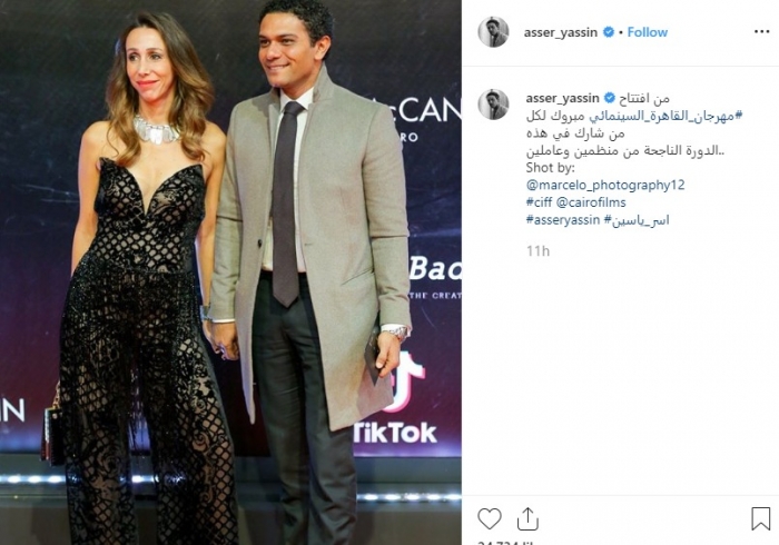 نشر الفنان آسر ياسين عبر حسابه الشخصي على موقع "إنستجرام"، صورة تجمعه بزوجته من حفل افتتاح الدورة 41 لمهرجان القاهرة السينمائي الدولي.