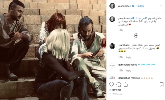 وعلقت الفنانة ياسمين رئيس على الصورة: "خلص تصوير لص بغداد، والفيلم يناير 2020، إن شاء الله هايوحشني اللوكيشن".