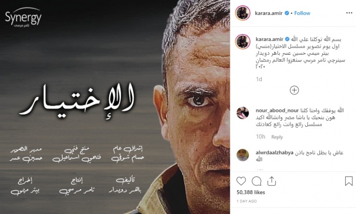 وعلق كرارة، على الصورة، التي نشرها عبر حسابه على إنستجرام: "بسم الله توكلنا علي الله، أول يوم تصوير مسلسل الاختيار (منسي)، سنغزوا العالم، رمضان 2020".