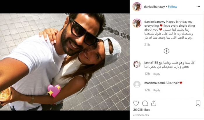 نشرت دانيا البناوي، زوجة الفنان كريم فهمي، عبر حسابها الشخصي بموقع "إنستجرام" صورة تجمعها به، تهنئه خلالها بعيد ميلاده.
