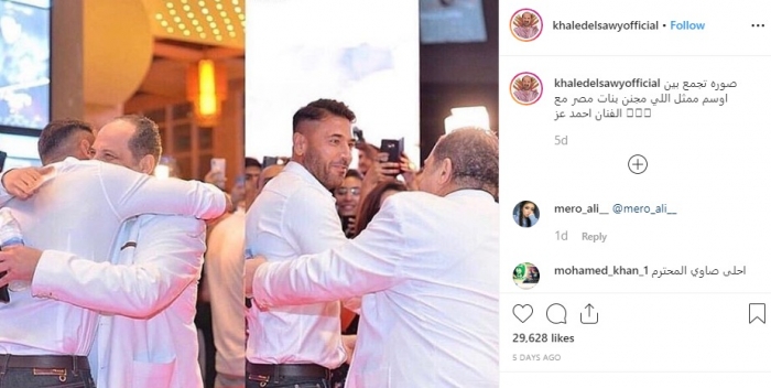 وكان الصاوي قد نشر قبل أيام صورة مع الفنان أحمد عز، وعلق عليها: "صورة تجمع بين أوسممثل اللي مجنن بنات مصر مع الفنان أحمد عز".