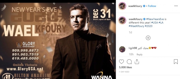 ونشر كفوري بوستر دعائي للحفل، عبر حسابه الرسمي بموقع "إنستجرام"، وعلق: "ليلة رأس السنة مختلفة هذا العام، في أمريكا 2020".