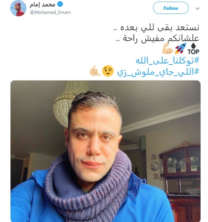 وكتب إمام في تعليقه: "نستعد بقى للي بعده ، علشانكم مفيش راحة، توكلنا على الله، اللي جاي مالوش زي" .
