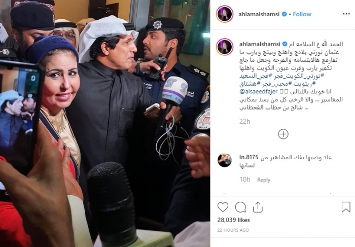 كتبت أحلام: "الحمد لله ع السلامة أم عثمان نورتي بلادك وأهلك وبيتك، ويارب ما تفارقك هالابتسامة والفرحة وجعل ما جاك تكفير يا رب، وقرت عيون الكويت وأهلها".