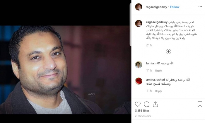 نعت الفنانة رجاء الجداوي، عبر حسابها على "إنستجرام"، المخرج الراحل شريف السقا، الذي لقي مصرعه أمس في حادث سيارة.