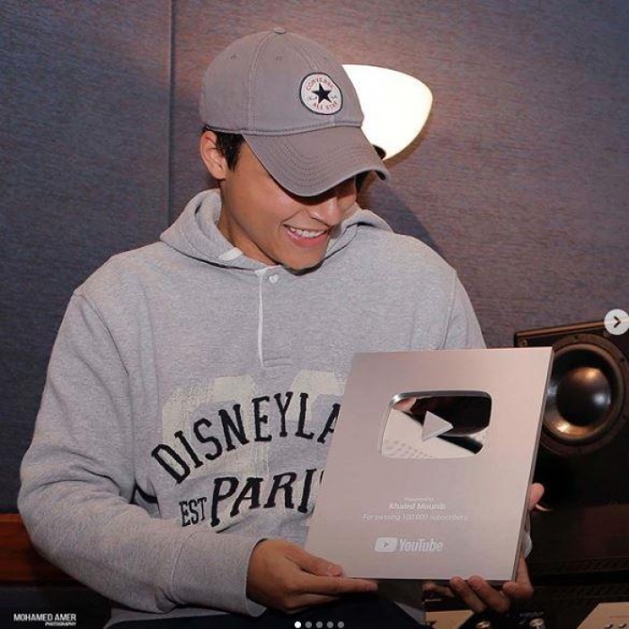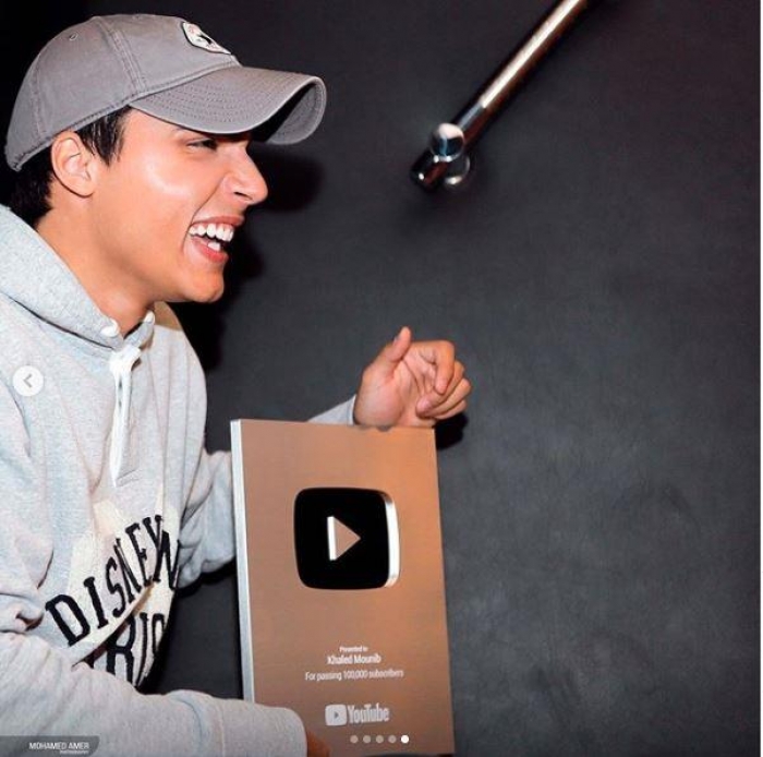 نشر الفنان الشاب خالد منيب، صورًا له بعد استلامه درع "يوتيوب" الفضي، بعد وصول عدد متابعي قناته على الموقع لـ100 ألف.
