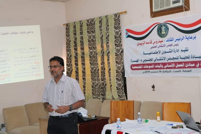 نظمت الشئون الاجتماعية في المجلس الانتقالي الجنوبي بمحافظة المهرة، اليوم السبت، دورة تدريبية، تحت عنوان، مبادئ العمل الإنساني وآليات المسوحات المجتمعية.