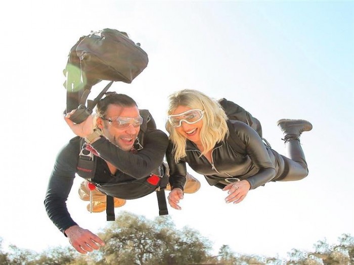 نشر الفنان محمد إمام، صورة تجمعه بالفنانة أمينة خليل من كواليس فيلم "لص بغداد"، أثناء ركوبهما الباراشوت، وذلك عبر حسابه على إنستجرام.