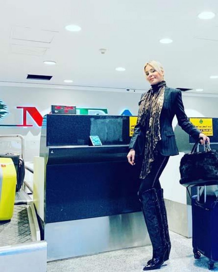 وظهرت دومينيك في الجلسة بإطلالة أنيقة سوداء، خلال تواجدها في المطار، أثناء توجها لدولة الإمارات، وعلقت: "سياحة عائلية طويلة في بلدي الثاني، الإمارات".