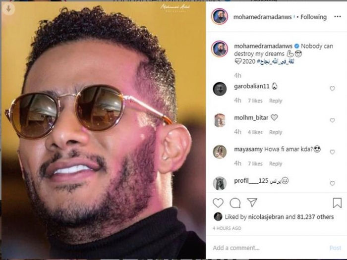 ونشر رمضان صورة له عبر "انستجرام"، وعلق: "لن يستطيع أحد تدمير أحلامي في 2020".