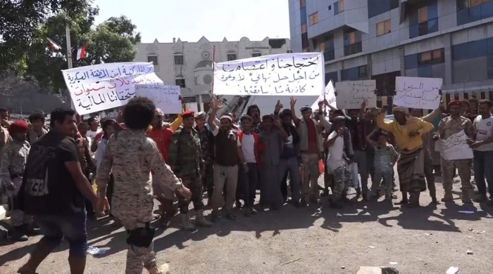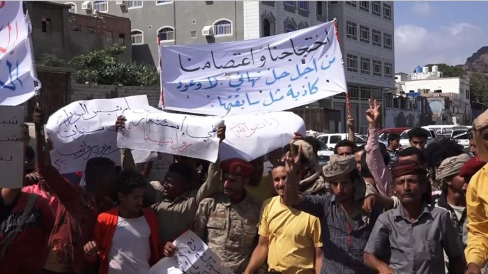 وأعلن المحتجون عن دخولهم في خطوات تصعيدية حتى الحصول على مستحقاتهم، مناشدين التحالف العربي بالضغط على حكومة الشرعية لتنفيذ مطالبهم.