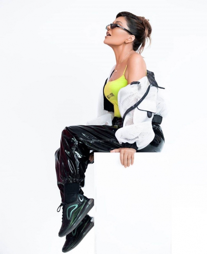 وظهرت سميرة في الصور بإطلالة شبابية، مرتدية بنطلونًا من الجلد، ونظارة شمسية سوداء، وعلقت "هليلة".