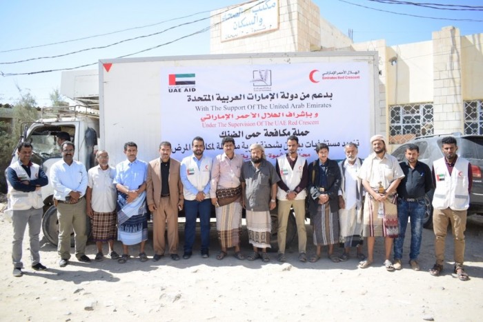 سيرت هيئة الهلال الأحمر الإماراتي، اليوم الثلاثاء، شحنة أدوية ومحاليل لمكافحة وباء حمى الضنك في مديرية بيحان بمحافظة شبوة.
