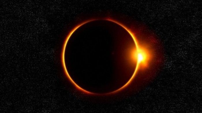 وفي تلك الظاهرة سيقع القمر أمام الشمس ويكون قطره الظاهري أصغر من قطر الشمس الظاهري بقليل، فيحجب الشمس وتبقى منها قطعة محيطة بالقمر على شكل حلقة مضيئة.