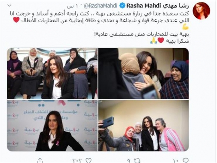 نشرت الفنانة المصرية رشا مهدي، عبر حسابها الشخصي بموقع "تويتر" صورًا من زيارتها لمستشفى بهية.