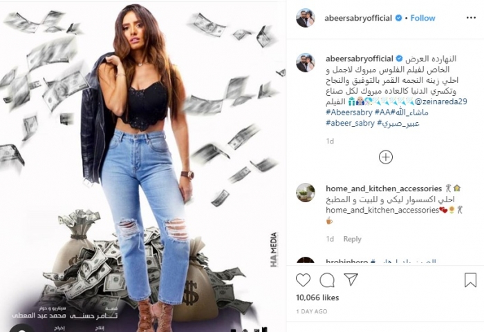نشرت الفنانة عبير صبري، عبر حسابها الشخصي بموقع "إنستجرام"، البوستر المنفرد للفنانة زينة الخاص بفيلم "الفلوس".