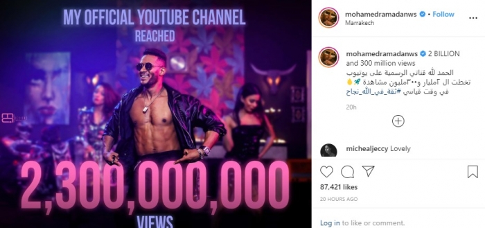 وكتب رمضان: "الحمد لله قناتي الرسمية على يوتيوب حققت ٢مليار و٣٠٠ مليون مشاهدة، في وقت قياسي، ثقة في الله نجاح".