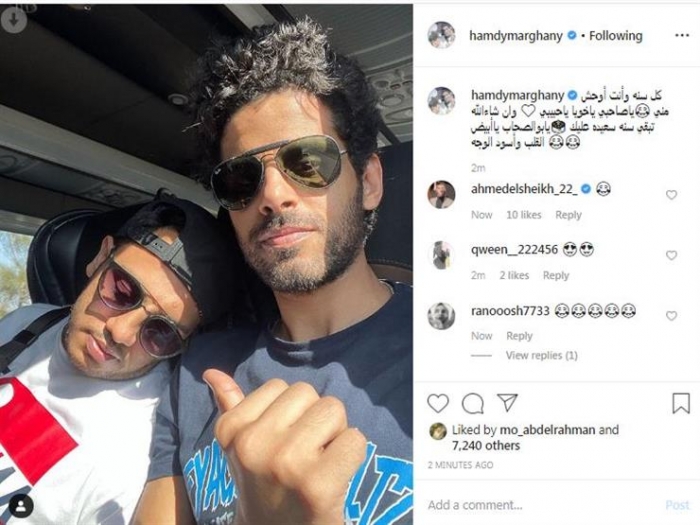 ونشر الميرغني، صورة تجمعه مع أوس أوس وهو نائم في السيارة عبر حسابه على "إنستجرام"، وعلق: "كل سنة وأنت أوحش مني يا صاحبي يا خويا يا حبيبي.. وإن شاء الله تبقى سنة سعيدة عليك.. يابو الصحاب يا أبيض القلب وأسود الوجه".