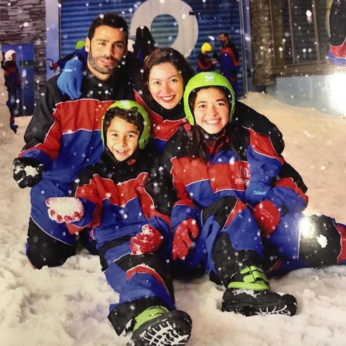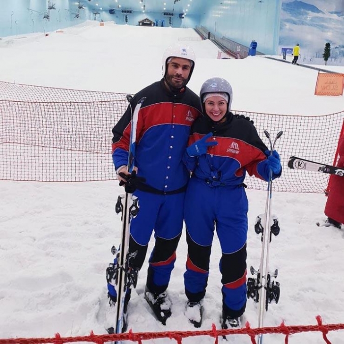 ونشرت لقاء، صورا لها مع زوجها محمد عبدالمنصف حارس مرمى وادي دجلة ونجليهما، وعلقت: "التزلج.. مغامرة".