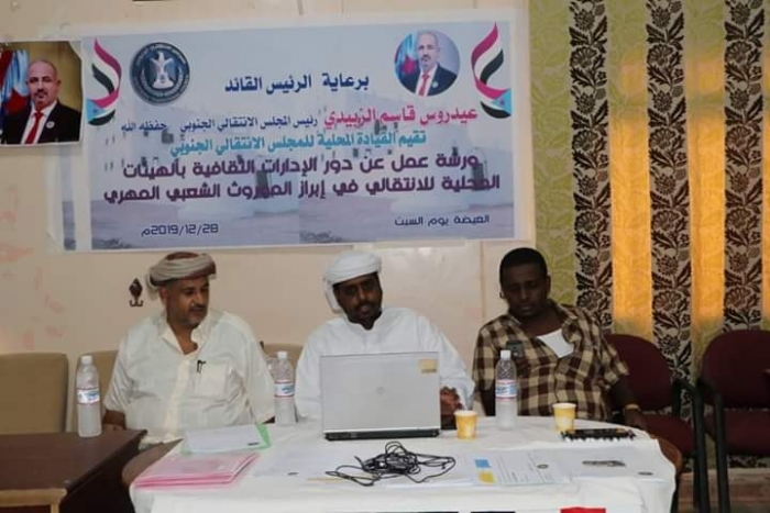 نظمت الإدارة الثقافية بالقيادة المحلية للمجلس الانتقالي الجنوبي في محافظة المهرة، اليوم السبت، ندوة حول دور الإدارات الثقافية بالهيئات المحلية للانتقالي بالمحافظة في إبراز الموروث الشعبي المهري.