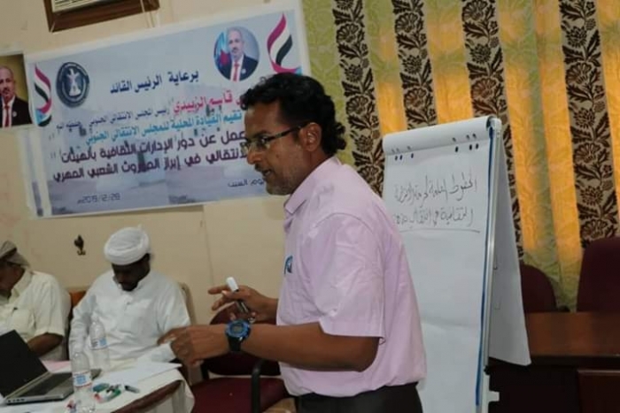 واستهدفت الندوة مدراء الإدارات الثقافية للمجلس الانتقالي بمديريات المحافظة.