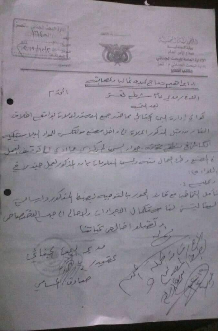 عجز عن سرقة أرض قريبهما.. قيادي في مليشيا الإخوان يقتل فردين بتعز (وثائق)