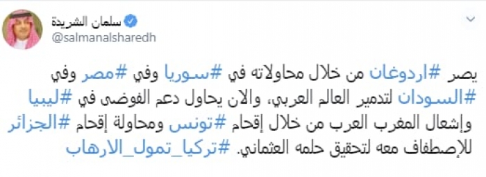 الشريدة: أردوغان يُحاولّ إشعال الفوضى بدول المغرب العربي