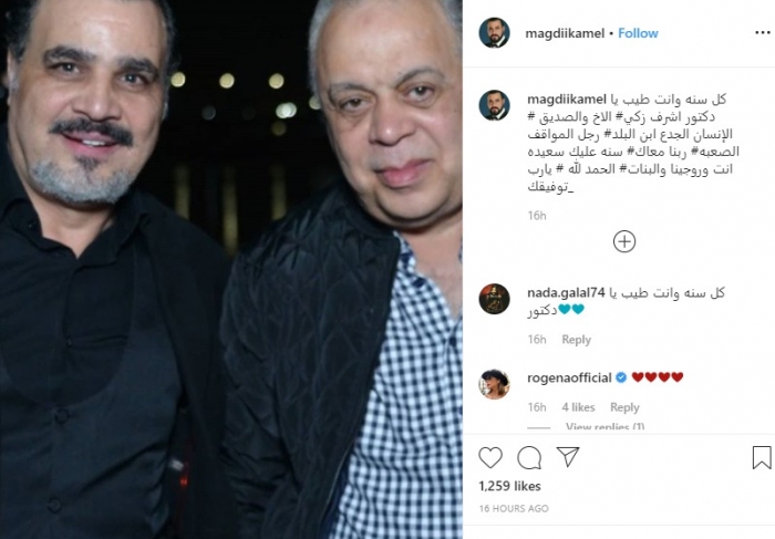 ونشر "كامل" صورة تجمعهما عبر حسابه الرسمي بموقع إنستجرام، وعلق: "كل سنة وإنت طيب يا دكتور أشرف زكي، الأخ والصديق، الإنسان الجدع ابن البلد رجل المواقف الصعبة، ربنا معاك، وسنة سعيدة عليك إنت وروجينا والبنات".