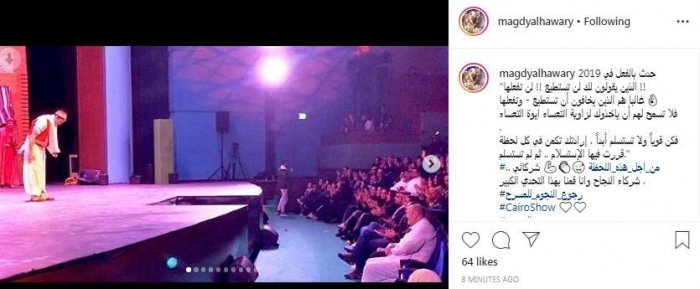 وأضاف: "من أجل هذه اللحظة.. شركائي، شركاء النجاح وإن قمنا بهذا التحدي الكبير.. رجوع النجوم للمسرح..CairoShow.. رجوع المسرح.. رجوع جمهور المسرح في الوطن العربي.. المسرح في ثوبه الجديد دعواتكم في 2020".