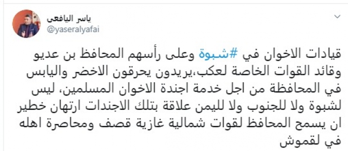 اليافعي يكشف مُخطط مليشيات الإخوان في شبوة