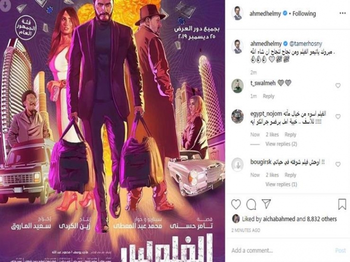 ونشر حلمي، بوستر الفيلم عبر حسابه على"انستجرام"، وعلق: "مبروك يا تيمو الفيلم.. ومن نجاح لنجاح إن شاء الله".