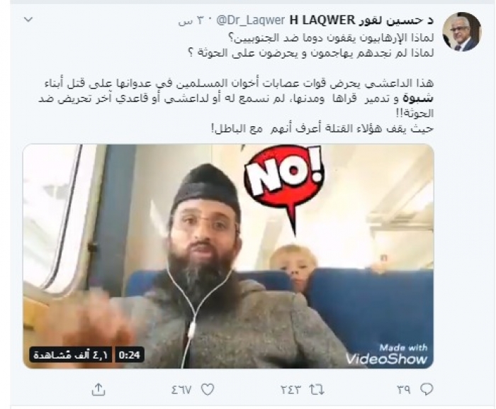 وكتب "لقور" في تغريدة عبر حسابه بتويتر، رصدها "المشهد العربي" قال فيها: "لماذا الإرهابيون يقفون دوما ضد الجنوبيين؟".