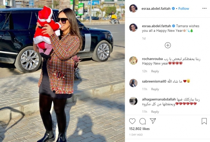 نشرت الفنانة إسراء عبد الفتاح عبر حسابها الشخصي بموقع "إنستجرام" أول صورة لابنتها تمارا، ظهرت فيها بملابس بابا نويل.