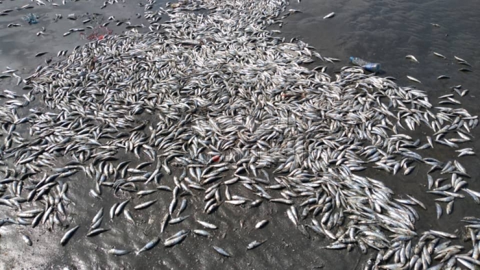 طفت أطنان من الأسماك النافقة، صباح اليوم الجمعة، على سواحل خور مكسر وصيرة بالعاصمة عدن.