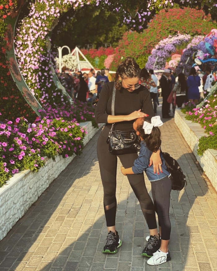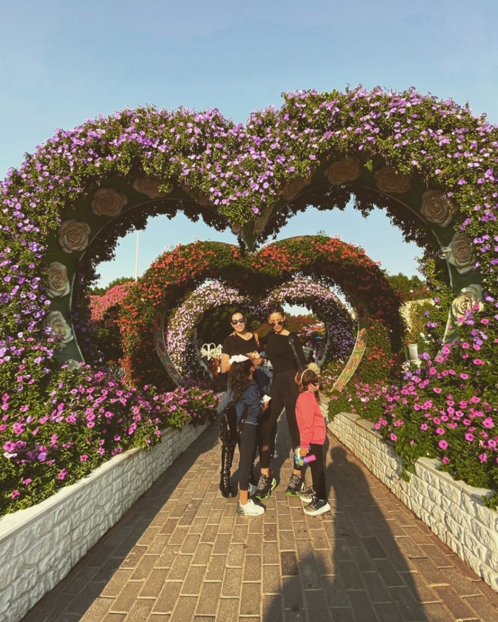 وظهرت بوسيل مع أسرتها في الصور داخل إحدى الحدائق المشهورة في دبي، وعلقت: "الحب هو سر كل شيء في هذا العالم.. وقت العائلة".