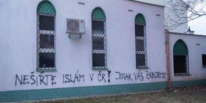 وكتب مجهولون بالتشيكية على الجدار الخارجي للمسجد "لا تنشروا الإسلام في الجمهورية التشيكية! وإلا سنقتلكم".