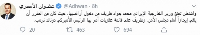 الأحمري يكشف تفاصيل قرار أمريكا بشأن ظريف