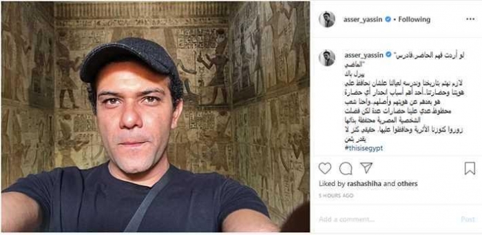 وكتب "آسر"، عبر حسابه بـ"انستجرام"، قائلًا: "لو أردت فهم الحاضر، فادرس الماضي، لازم نهتم بتاريخنا وندرسه لعيالنا علشان نحافظ على هويتنا وحضارتنا، أحد أهم أسباب انحدار أي حضارة هو بعدهم عن هويتهم وأصلهم، واحنا شعب محظوظ، عدى علينا حضارات عديدة لكن فضلت الشخصية المصرية محتفظة بذاتها، زوروا كنوزنا الأثرية وحافظوا عليها، حقيقي كنز لا يقدر بثمن".