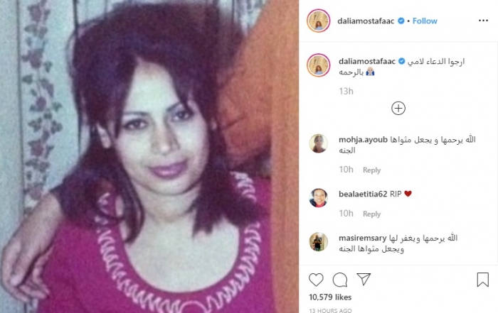 وطالبت "داليا"، جمهورها بالدعاء لها، وكتبت: "أرجو الدعاء لأمي بالرحمة". وتفاعل متابعيها مع المنشور، وتركوا لها العديد من التعليقات التي تضمنت الدعاء لوالدتها.
